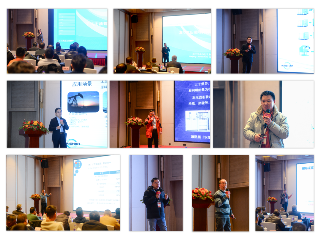 本次會(huì)議圍繞著“逐夢(mèng)聚勢(shì)”的主題,來自集團(tuán)內(nèi)的多位專家紛紛上臺(tái)發(fā)言介紹無油螺桿機(jī)、氫壓縮機(jī)、流體機(jī)械、工業(yè)/商業(yè)冷凍、智能高壓軟啟動(dòng)、高效水冷卻系統(tǒng)等產(chǎn)品,全方位、多角度對(duì)代理商/合作伙伴進(jìn)行了一次專業(yè)性的培訓(xùn)。與此同時(shí),集團(tuán)無油機(jī)產(chǎn)品部門,開泰克(上海)流體機(jī)械有限公司以及其他產(chǎn)品部門,開山壓縮機(jī)服務(wù)(上海)有限公司分別對(duì)他們各自的產(chǎn)品及服務(wù)進(jìn)行了詳細(xì)的講解。
