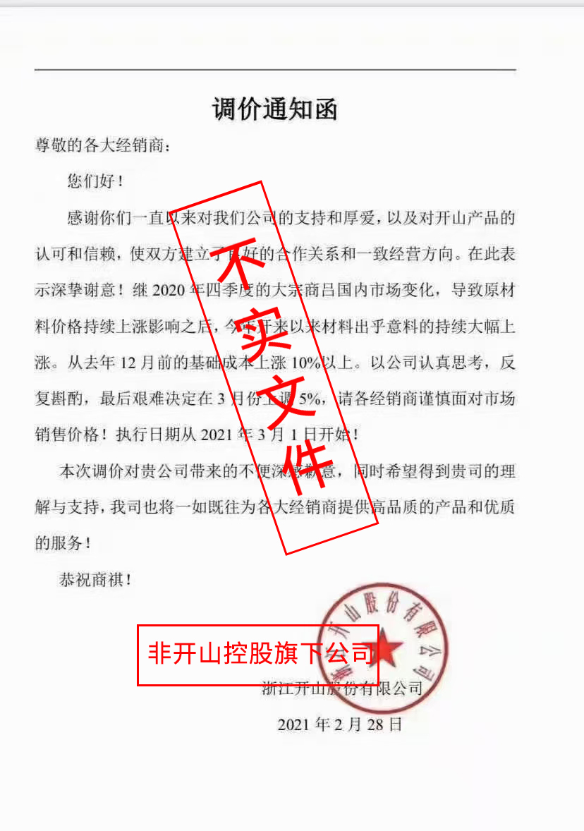 開山股份市場部聲明